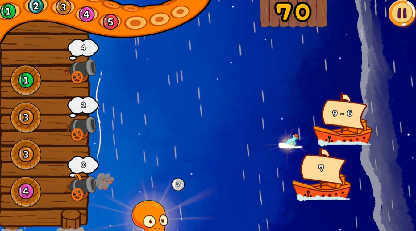 Pupko is a fun and colorful 2D game where you play as a cute little orange octopus who must protect the ocean from sneaky pirate ships sent by the Kraken. The pirates arrive in three lanes, and to stop them, you’ll solve simple math challenges by matching colorful orbs and firing them from your cannons. With a mix of quick thinking and strategy, Pupko turns learning into an exciting underwater adventure!